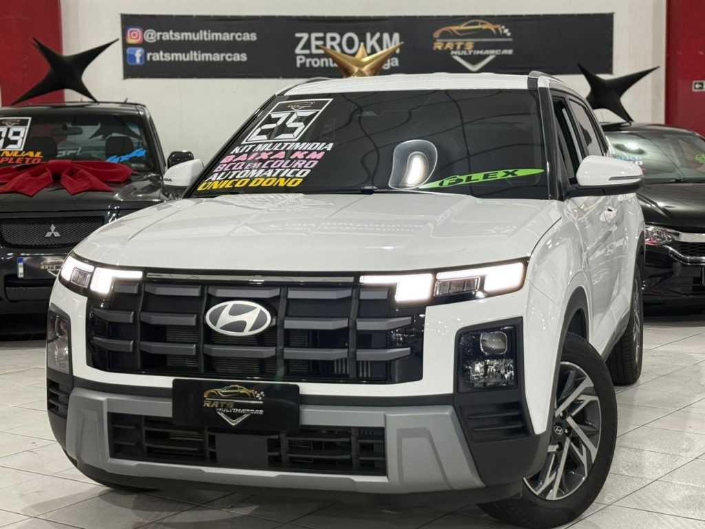 HYUNDAI CRETA 1.0 TGDI LIMITED SAFETY – 2025 / 2025 Câmbio Automático | Prata | Flex ar condicionado, bancos em couro, airbags, porta copos, vidros e travas elétricas, computador de bordo, retrovisores elétricos, multimidia e rodas de liga leve Valor: R$ 144.900,00 à vista Reservamos o direito de corrigir possíveis erros de Digitação.