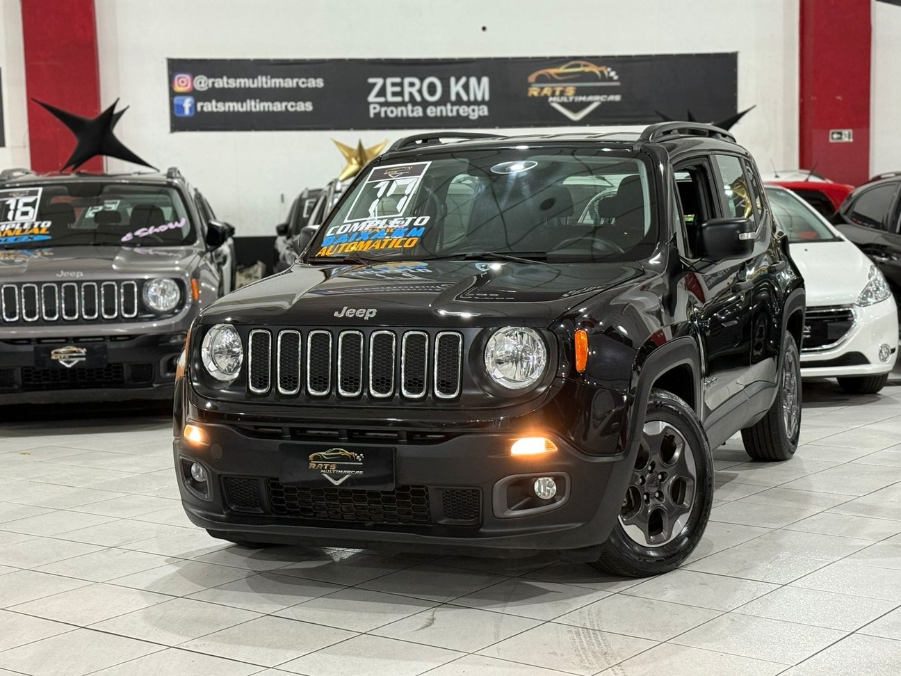 JEEP RENEGADE 1.8 AT SPORT - 2017/2017 Câmbio Automático | Preta | Flex Ar Condicionado,vidros elétricos, rodas de liga leve, som original, Freios ABS, porta copos Reservamos o direito de corrigir possíveis erros de Digitação.
